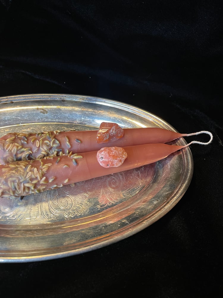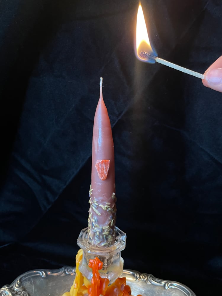 -DO NOT LEAVE UNATTENDED, candles contain dried herbs/flowers that will crackle/sizzle and small crystals that will fall out. (You can also remove these crystals before burning)