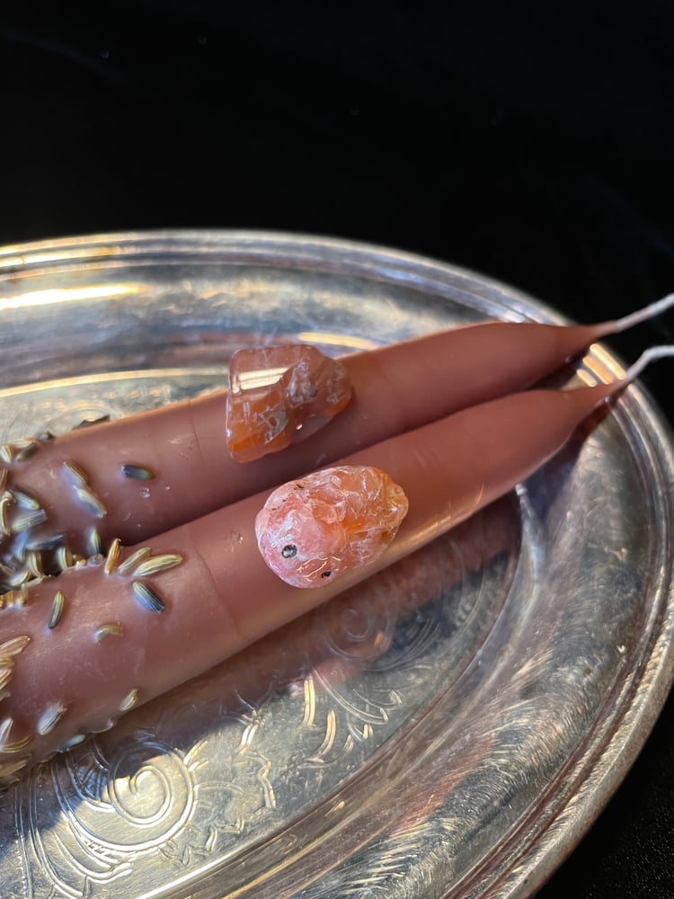 Rolled in fennel and lavender & set with Carnelian