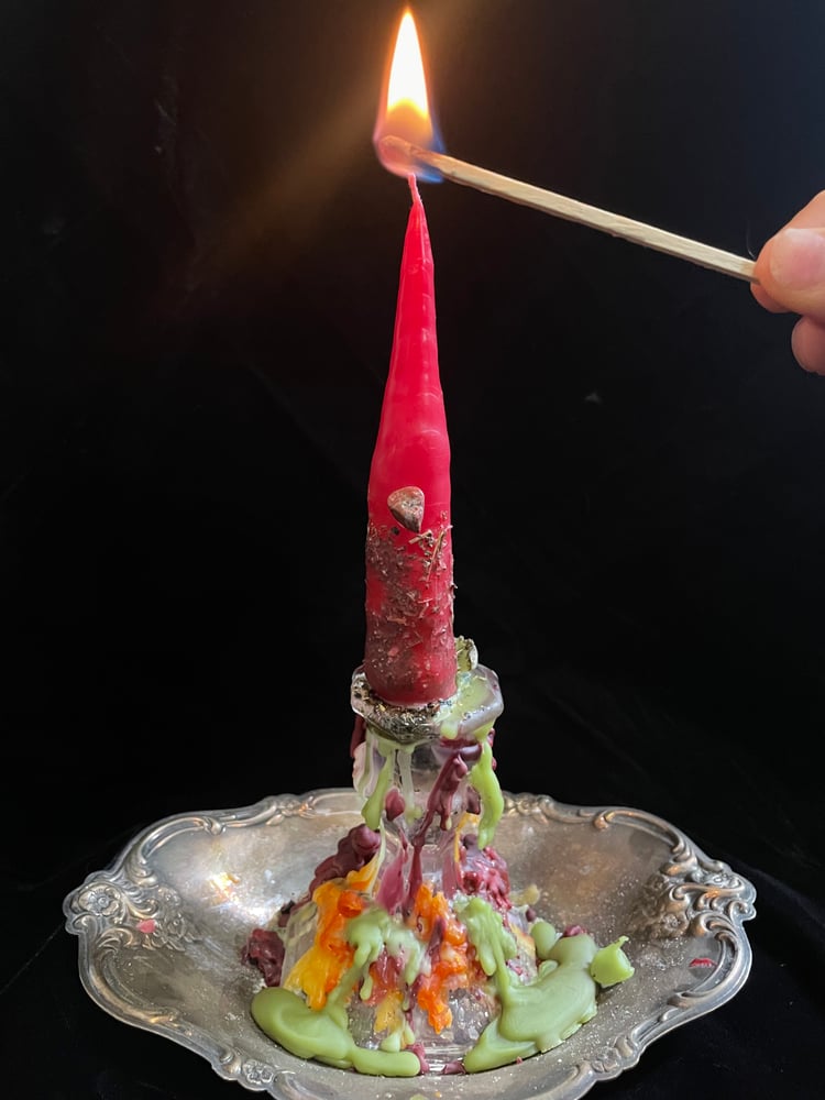 -DO NOT LEAVE UNATTENDED, candles contain dried herbs/flowers that will crackle/sizzle and small crystals that will fall out. (You can also remove these crystals before burning)