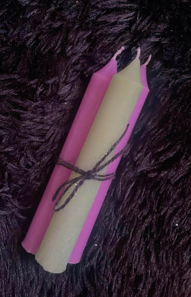 Charity candles are created using excess wax from my hand-dipped ritual candles, thus they are all different and have different colors/fragrances and sometimes different herbs in them as well.